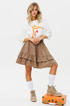 Повседневная юбка длины миди, выполненная из приятного к телу, эластичного трикотажа. Модель расклешенного фасона, высокой посадки, с удобным эластичным поясом. Низ изделия выполнен из принтованной ткани в складку.
