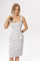 По передней половине юбки выполнены складки и  левой стороны вертикальный шов, в нижней части которого обработан разрез.