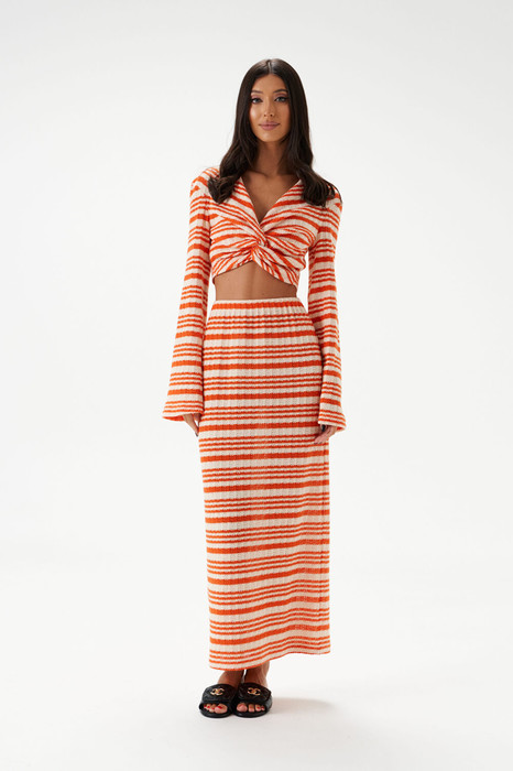Юбка прямого кроя. Выполнена из мягкого вязаного трикотажа.Характеристики: прямой крой, пояс на резинке, эластичная, низ изделия не обработан. Длина по боковому шву 98 см.