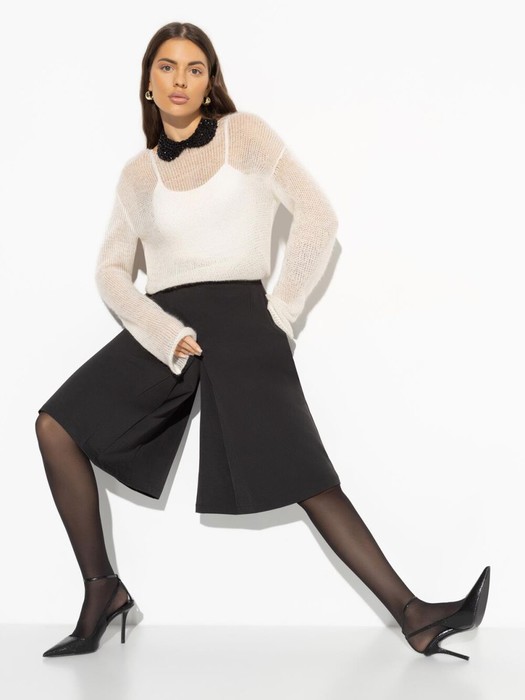 Ты можешь хлопать озадаченно ресницами в ответ на вопрос, как открыть капот. А можешь и поменять масло в своем автомобиле. Все зависит от контекста и обстоятельств. В одной ситуации нужна юбка, в другой шорты. Ты многогранная личность и выбираешь юбку-шорты от CHARUTTI. Юбка-шорты длины до колена. Есть карманы. Посадка на талии. Изделие застегивается на молнию сбоку.