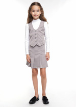 Стильная укороченная модель для девочек. Имеет по четыре встречные складки спереди и сзади. Юбочка дополнена кокеткой с хлястиками.Хлястики декорированы пуговицами.Застежка на потайную молнию выполнена в левом боковом шве.На подкладе