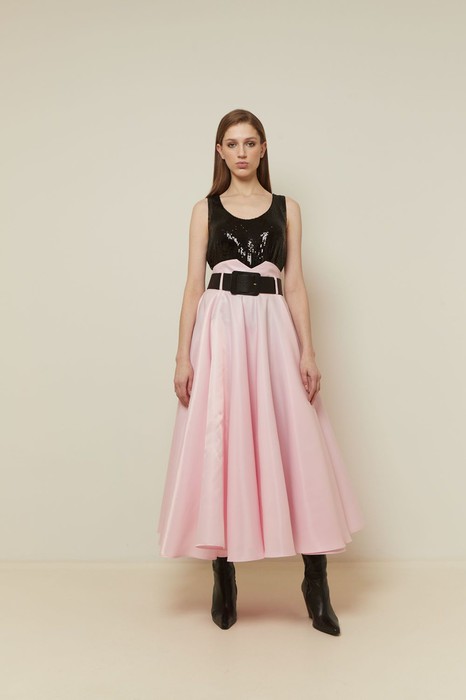 Топ прямого силуэта будет хорошо смотреться на различных типах фигуры. Он создаст эффект свободы и комфорта. Трикотажные материалы обеспечивают комфорт и подвижность. Пайетки придают ткани дополнительный блеск и текстуру.