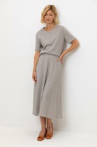 Эта женская юбка длины «миди» изготовлена с подкладкой для дополнительного комфорта и идеальной посадки. Модель имеет свободный крой, расширяющийся к низу, что придает силуэту женственность и легкость. Перед и спинка украшены аккуратным средним швом, добавляющим структуру и элегантность.