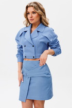 Юбка выполнена из плотного атласа. Юбка расширенная к низу, на притачном поясе, длиной миди.Переднее и заднее полотнища цельные и выкроены по косой. Застежка в левом боковом шве на потайную молнию и пуговицу. Юбка без подкладки.
