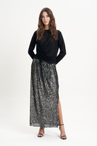 Юбка-рыбка на притачном эластичном поясе, с застёжкой по боковому шву на потайную молнию, петлю и пуговицу, на трикотажной подкладке.