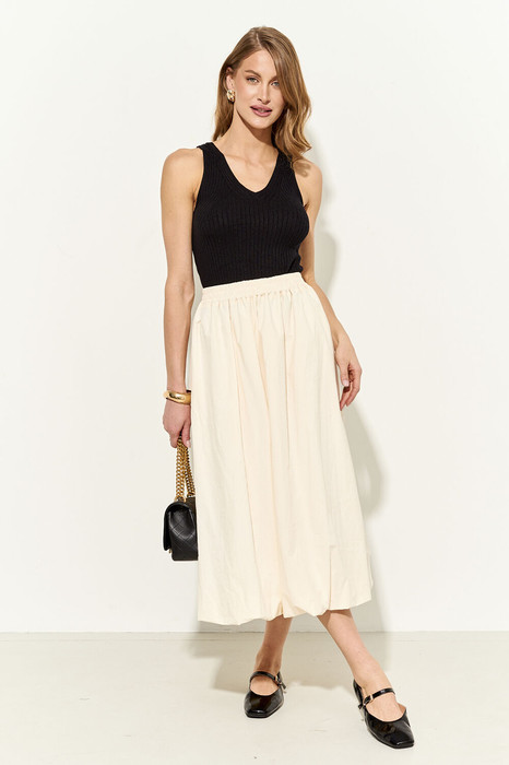 Юбка-баллон на хлопковой подкладке выполнена из мягкого натуральной жатого хлопка. Юбка свободного силуэта с притачным поясом, который полностью на резинке. Юбка оответствует заявленному размеру. Пожалуйста, пользуйтесь таблицей замеров готового изделия, чтобы подобрать идеальный размер.