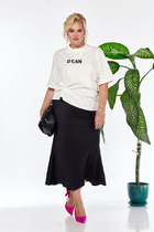 Юбка с пришивным поясом, застежкой на потайную молнию в среднем шве заднего полотнища. Заднее полотнище с талиевыми вытачками. Заднее полотнище со средним швом, заканчивающимся разрезом.
