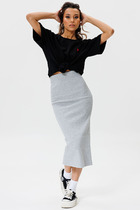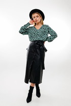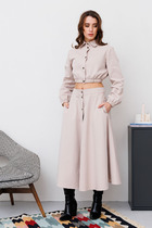 Юбка-карандаш из однотонной костюмной ткани. Модель на кокетке, дополнена шлевками под ремень. По бокам выполнены накладные карманы. В боковом шве – застежка на потайную молнию. Низ ровный, дополнен разрезом со встречными веерными складками. На подкладе.