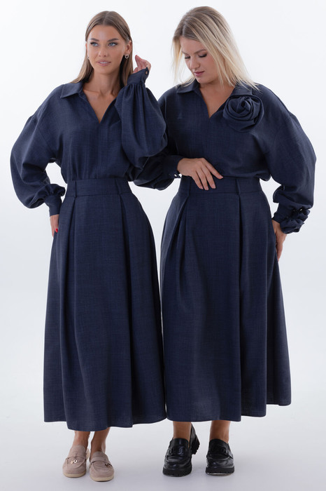 Эта удлиненная юбка-трапеция — воплощение грации и изысканности. Ее структура, будто сотканная из времени и традиций, создаёт ощущение лёгкости и свободы. Боковые карманы, скрытые в плавных линиях, несут в себе тайну и практичность, готовые хранить мелочи жизни. Встречные складки добавлют в каждый шаг нотку загадочности и элегантности. Юбка-трапеция: чарующий союз классики и современности.