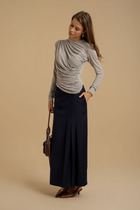 Vilatte Юбка миди с разрезом из струящегося плотного сатина D26.205 кофейный