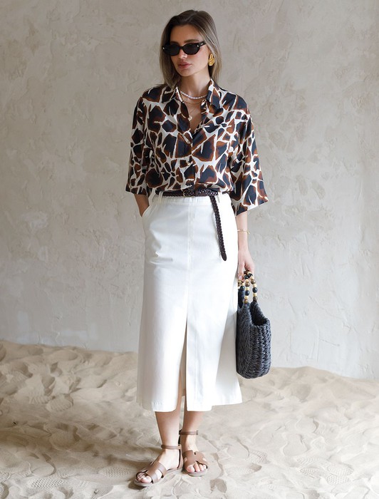 Юбка-миди из хлопка с разрезом