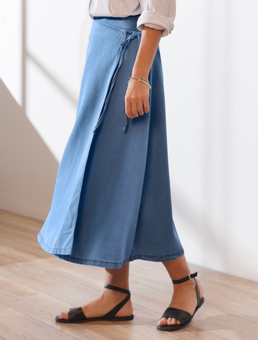 Состав: 70%Лиоцелл (Вис) 20%ПЭ 10%Вис Плотность: 7,8 OZЭффектная юбка миди на запах А-силуэта светло-синего цвета из джинсового лиоцелла плотностью 7,8 OZ станет отличным выбором для тех, кто ценит комфорт и легкость в повседневной одежде. Свободный крой юбки мягко скроет недостатки фигуры, акцентируя внимание на достоинствах и придавая силуэту привлекательность и женственность. ЗапАх гарантирует удобство и возможность регулировки объема талии, а также добавляет современный акцент. Легкая и удобная, она подарит ощущение свободы движений. Ткань сочетает прочность и мягкость лиоцелла с вискозой, что делает её невероятно комфортной, дышащей, устойчивой к сминанию и идеально подходящей для чувствительной кожи. Юбка отлично подходит для создания легких летних образов или стильных ансамблей на каждый день. Джинсовую юбку можно сочетать в стиле кэжуал, а также создавать романтичные образы или добавлять яркие акценты с помощью аксессуаров. Юбка средней длины гармонично сочетается с разной обувью и верхом, что делает ее отличным выбором для любого случая.