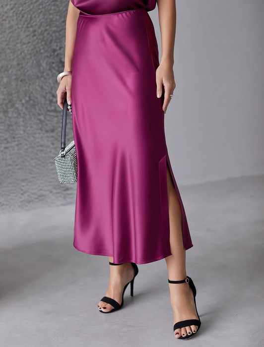 Юбка миди с разрезом из струящегося плотного сатина