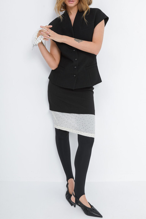 Прямая юбка с полупрозрачной деталью.