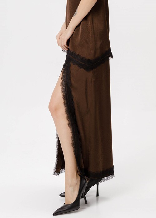 Асимметричная юбка-макси в бельевом стиле с кружевом.