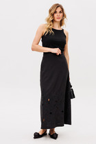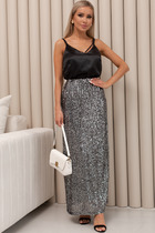 Стильная юбка из полупрозрачного вискозного полотна. Юбка на подкладке в длине миди, пояс на обтачке. Застежка в среднем шве по спинке на потайную молнию. Для удобства движения сзади обработана шлица.