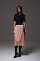 Vilatte Юбка миди вечерняя на резинке из матового сатина с мягкой сеткой D26.204
