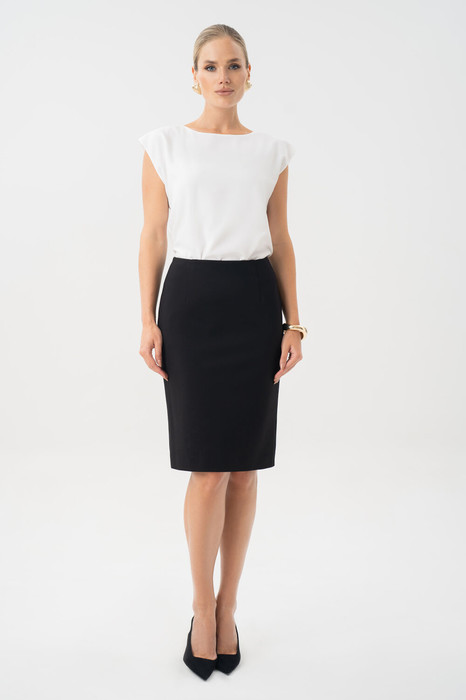 Юбка женская черная URS – это классический элемент базового гардероба, который остается актуальным в любое время года. Юбка прекрасно комбинируется с блузой 24-425-1 и является комплектом к жакету 25-641-1. Юбка женская, зауженная к низу, с посадкой на талии, выполнена из трикотажного полотна, на отлетной по низу подкладке. Юбка предназначена для повседневной носки.