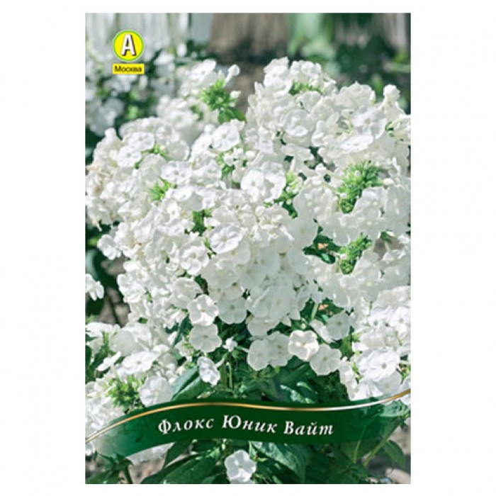 Чисто белые, крупные цветки собраны в плотные соцветия. Листва зелёная, устойчива к грибным заболеваниям. Компактные размеры куста позволяют широко использовать серию Юник на переднем плане цветников, вдоль дорожек. Высота 40-50 см.