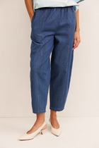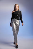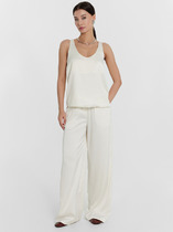 Брючины слегка заужены к низу, на щиколотках — плотные манжеты, благодаря которым обладательницам этих брюк не страшны ни снег, не холодный ветер. Пояс -резинка, внутри имеется шнурок для регулировки талии, два боковых кармана на молнии.