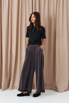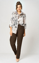 Стильные женские брючки на поясе с завышенной линией талии. Модель прямого кроя, на поясе — молния с клепкой, по бокам вшита резинка, имеются два боковых кармана.