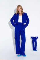 Стильные женские брючки на поясе с завышенной линией талии. Модель прямого кроя, на поясе — молния с клепкой, по бокам вшита резинка, имеются два боковых кармана.