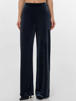Стильные женские брючки на поясе с завышенной линией талии. Модель прямого кроя, на поясе — молния с клепкой, по бокам вшита резинка, имеются два боковых кармана.