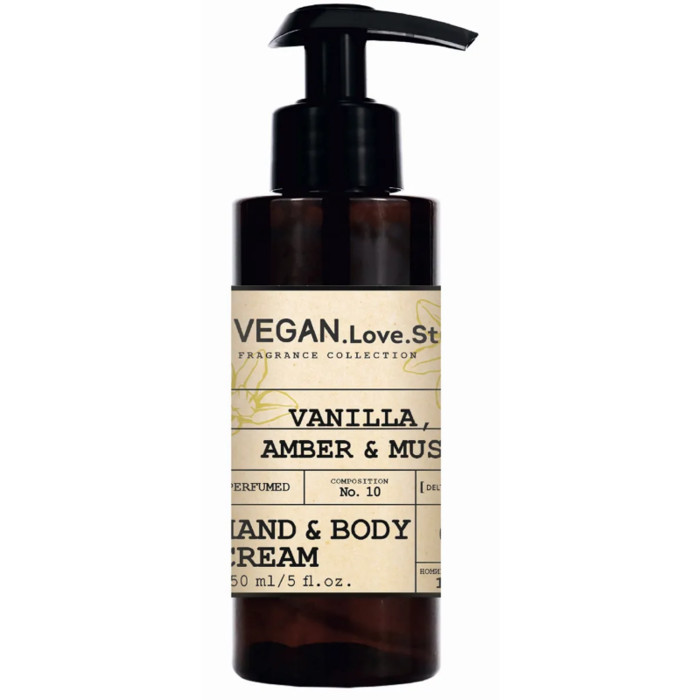 Парфюмированный крем-лосьон для рук и тела VEGAN.Love.Studio Vanilla, Amber, Musk (ваниль, амбра, мускус), 150 мл. Парфюмированный крем - лосьон для рук и тела из коллекции VEGAN.Love.Studio подарит Вам ощущение бодрости на весь день, и конечно же, невероятный аромат. Парфюмированный крем - лосьон для рук и тела с незабываемым ароматом ванили, амбры и мускуса способен погрузить вас в мир истинного блаженства и наслаждения! Этот удивительный крем-лосьон для рук и тела содержит активные ингредиенты высочайшего качества, среди которых особое место занимает масло макадамии и экстракт ванили.Помимо этого, крем- лосьон с ароматом Vanilla, Amber, Musk станет отличным подарком на любой праздник, засчет своей универсальности: волшебный аромат, увлажнение кожи и веганский состав, который подойдет коже любого человека. Сделайте приятное Вашей второй половинке, сестре, маме, бабушке или подруге на 8 марта, день рождения или на любой другой праздник! Крем для рук и тела питательный - снимает шелушение и сухость - питает и смягчает. Восхитительный крем интенсивно увлажняет, питает, смягчает и восстанавливает кожу рук и тела, склонную к сухости и шелушению. Полностью впитывается, не оставляя липкости и жирных следов. Результат – гладкая, мягкая, эластичная кожа.