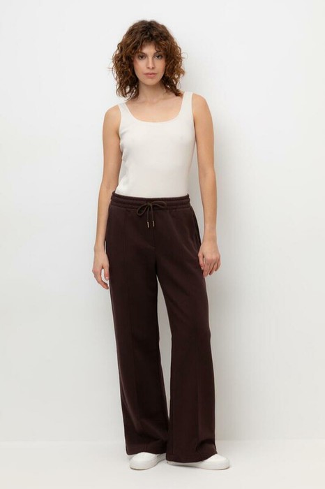 Брюки прямого кроя со стрелкой и боковыми карманами из мягкого петельчатого футера. В составе 80% натурального хлопка и 20% полиэстера, при этом полиэстер ввязан внутрь по особой технологии и не соприкасается с кожей. Пояс со шнурком позволяет регулировать посадку. Идеальный и комфортный вариант на каждый день.