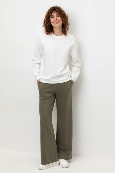Брюки прямого кроя со стрелкой и боковыми карманами из мягкого петельчатого футера. В составе 80% натурального хлопка и 20% полиэстера, при этом полиэстер ввязан внутрь по особой технологии и не соприкасается с кожей. Пояс со шнурком позволяет регулировать посадку. Идеальный и комфортный вариант на каждый день.