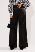 Свободные женские брюки со стрелками и боковыми карманами из плотного гладкого трикотажа интерлок. Застегиваются на молнию и кнопку. Низ обработан плоскими швами.