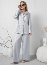 Брюки прямого кроя со стрелкой и боковыми карманами из плотного гладкого трикотажа интерлок.