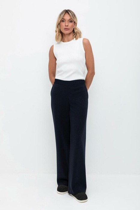 Брюки прямого кроя с боковыми карманами из плотного гладкого трикотажа интерлок. В составе 75% натурального хлопка, 17% п/э и 8% спандекса, при этом полиэстер ввязан внутрь по особой технологии и не соприкасается с кожей. Пояс на резинке обеспечивает комфортную посадку. Идеальный и комфортный вариант на каждый день.