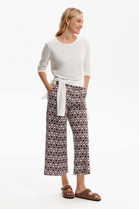 Летние брюки из премиального трикотажа DOUBLE FACE. За счет фактуры переплетения и специальных обработок сохраняют силуэт и форму. Хлопок в составе добавляет комфорта при носке. Длина брюк 7/8, по передней части застрочена стрелка. В сочетании с жакетом из этой коллекции вы создадите элегантный образ для летних дней.