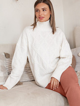 Vilatte Свитер из мягкой пряжи крупной резной вязки D34.183 белый