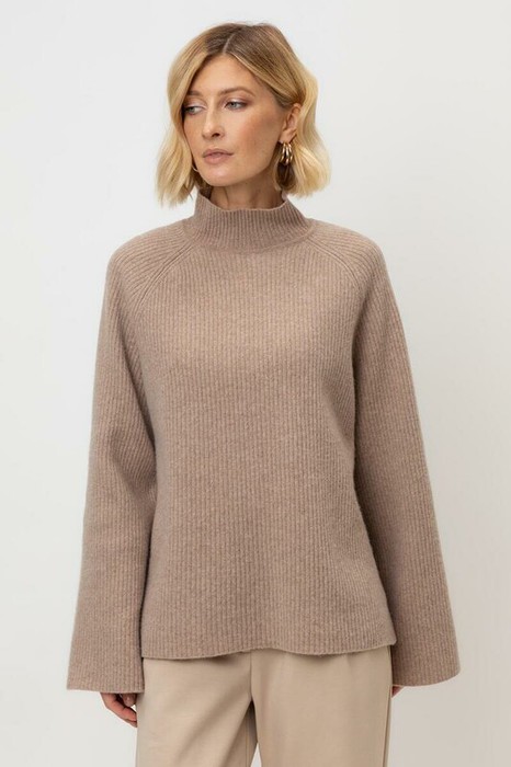 Джемпер из премиальной итальянской шерсти с рукавами-реглан в тонкий рубчик, рукава связаны ластиком 2*2. Средняя плотность вязания и пластичная фактура сохраняют форму изделия.