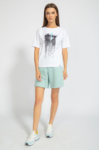 Свободная футболка из набивного трикотажа супрем. Спущенное плечо придает изделию свободный силуэт.