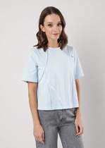 Джемпер поло с короткими рукавами из интерлока с V-образным вырезом и декоративной пуговицей.