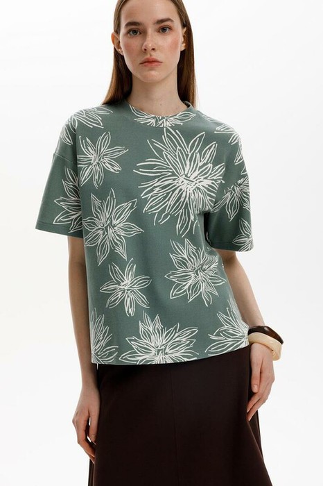 Совместные покупки Пермь Женская одежда Футболки — Very Neat фуфайка жен ЕВТ 3317/зеленый,крупные астры