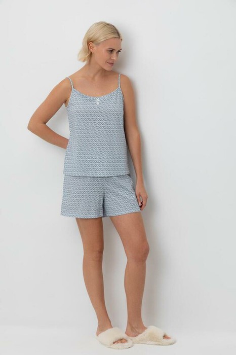Комплект из высококачественного гребенного хлопка выполнен с вниманием к деталям. Регулируемые бретели позволяют подстроить их под ваши индивидуальные предпочтения, а комфортный пояс шорт обеспечивает свободу движений.