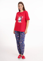 Комплект из объемного трикотажа с добавлением эластичных волокон. Свободный силуэт, мягкий пояс и отсутствие боковых швов на брюках обеспечат комфорт во время сна и отдыха.
