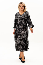 Платье с воротником из плотного набивного трикотажа интерлок. Модель с длинными рукавами и юбкой в складку.     Все трикотажные полотна производятся в соответствии с нормами Швейцарского сертификата ЭкоТекс. Сделано в России