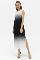 Легкое свободное платье с круглым вырезом на сборке, короткими рукавами из набивного трикотажа супрем.