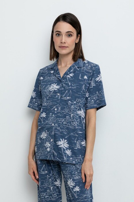 Совместные покупки Пермь Женская одежда Домашняя одежда — Very Neat рубашка жен Е 30083/джинсовый,морской пейзаж