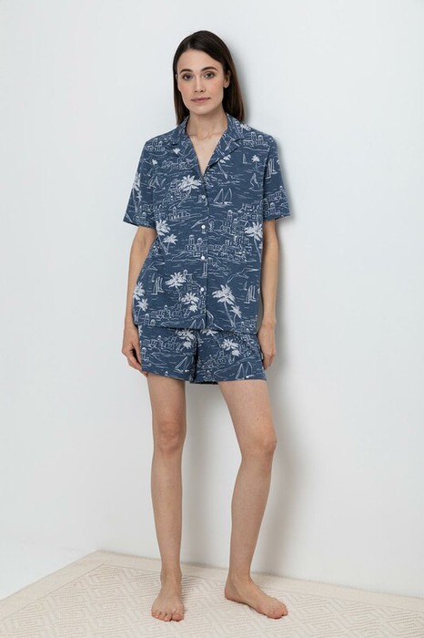 Very Neat шорты жен Е 40044/джинсовый,морской пейзаж