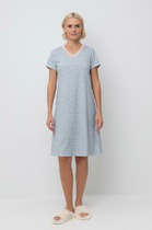 Комфортная сорочка с коротким рукавом выполнена из  высококачественного гребенного хлопка.  Эластичное кружево нежно обрамляет зону декольте, а свободный крой добавляет комфорта во время сна.