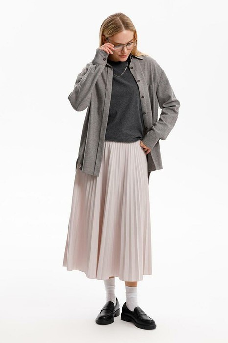 Струящаяся юбка гофре незаменима в вашем летнем гардеробе. Изготовленная из премиального трикотажа DOUBLE FACE, дарит ощущение комфорта и легкости. Серо-сиреневый цвет - это нежный оттенок, который придает образу романтичный стиль.
