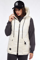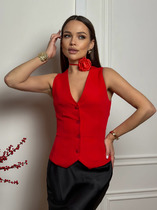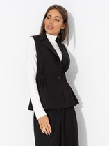 Вязаный жилет с элегантным глубоким вырезом. В составе 50% шерсти и 50% акрила. Шерсть в составе сохраняет тепло, а акрил делает изделие мягким и объемным.