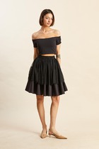Юбка черного цвета в тонкую клетку кроеная по косой. Фокус внимания привлекает асимметрия, которая подчеркнута мягкой драпировкой. Для пошива модели использовали мягкую, эластичную ткань на основе вискозы с добавление полиэстера и нитей эластана. За счет чего, изделие не мнется и не сковывает движения. Сочетается с любой обувью.