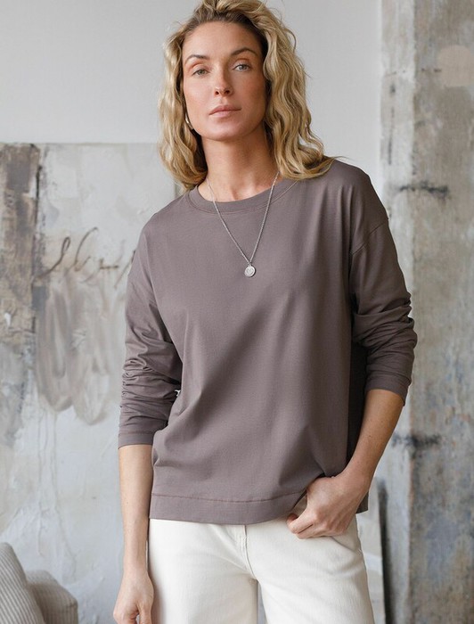 — Vilatte Базовый лонгслив из премиального хлопка с эластаном D49.147 кофейный